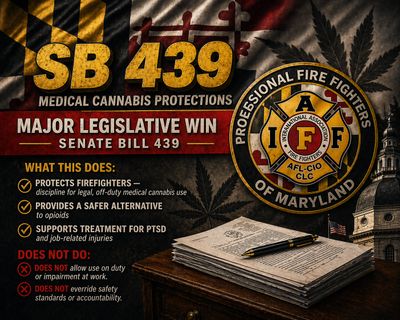 With passage in both chambers, SB439 now awaits the governor’s signature, marking a significant step forward in protecting firefighter health, wellness, and employment rights across Maryland.