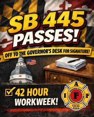 The bill now awaits the governor’s signature. If signed into law, it will mark a significant milestone for firefighters across Maryland and represent one of the most impactful labor reforms for the fire service in recent years.